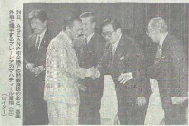 いま通貨を不安定化させて ASEAN諸国の経済に打撃を与えようとする巧妙な策動がおこなわれている。基本的な経済は健全なのに、数十億ドルによってこれまでの発展が破壊されかねない。市場を開放して自由にせよというが、ならず者の投機家に開放しろというのか。懸念がある。彼らは強力な通商ブロックを形成し、最強の8ヶ国が自分たちだけですべての国の運命をきめるべきだとしている。その犠牲はわれわれが払わなければならない。