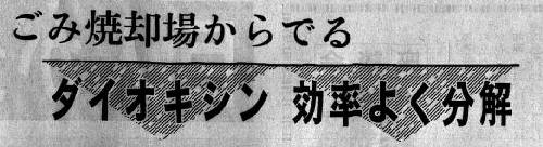新エネルギー・産業技術総合開発機構(NEDO)の研究グループは、こうした方法により、ごみ焼却場の排ガスをとりこんで放電をおこなえる実用規模の装置を試作。一日数百dのごみを焼却しているごみ焼却場に設置して、排ガスに含まれる有害物質の分解実験をおこないました。その結果、排ガス中のダイオキシンは九〇%以上分解し、なかには九九%分解した例もあったといいます。