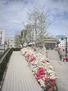 舞台は十分広いので、前側(芝生寄り)をステージとして使えば、歩行者の邪魔にはならないと思います。